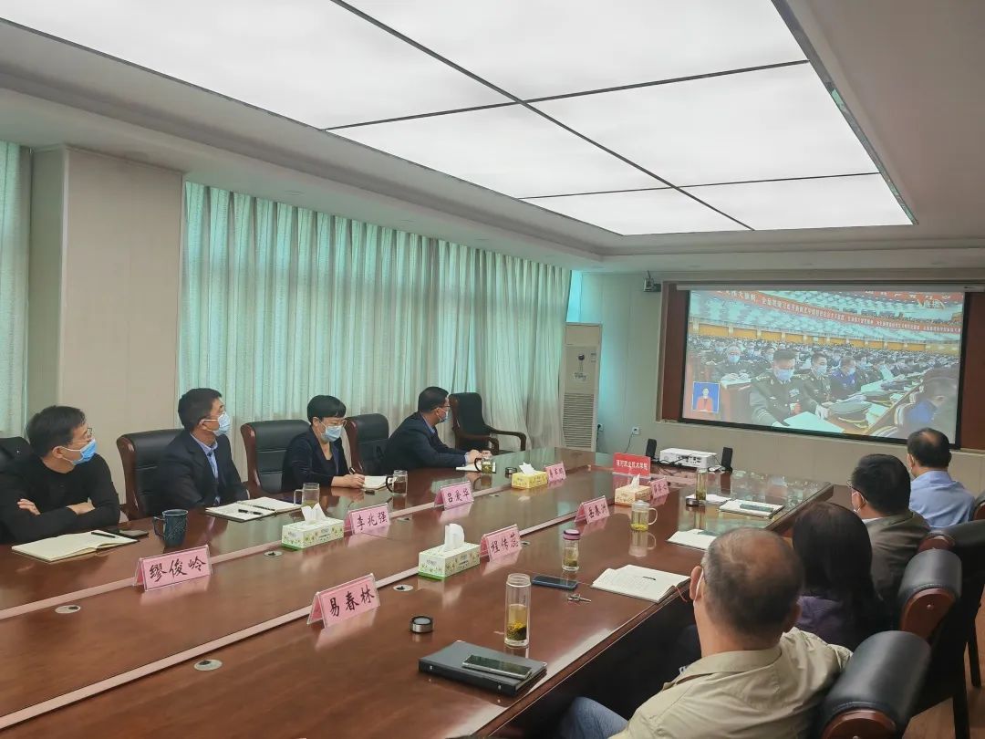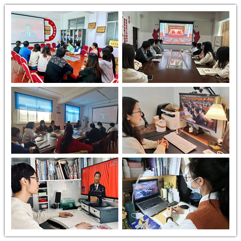 党委书记易军鹏、党委领导班子成员及教师代表集中收听收看党的二十大开幕会