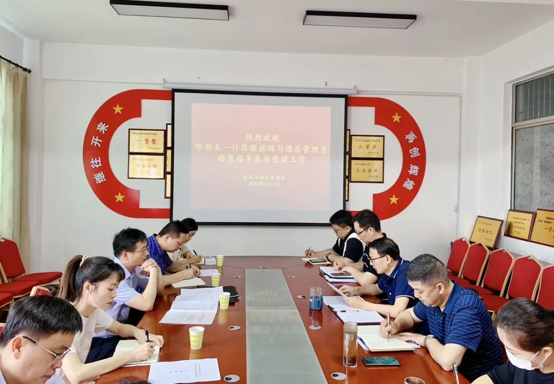 缪部长一行在系会议室,详细听取了系党总支书记耿鹏坤关于我系2023年上半年党建工作亮点等情况的汇报,对我系基层党建工作给予充分肯定和高度评价,一致认为我系党建工作开展扎实,创新力强,效果好。随后检查小组参观了我系双带头人支部书记工作室,通过现场查看会议记录、档案等材料的形式,查看《党支部工作记实本》记录是否完整详实,了解发展党员支部大会召开情况、党费收缴情况、党员领导干部“双重组织生活”及党支部“三会一课”、主题党日、组织生活会、党课等常规工作落实情况,了解党员发展工作是否规范,党员档案是否准确齐全,对我系基层党建工作情况进行了全面系统检查。