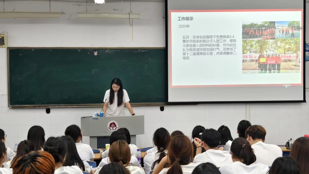 系团总支负责人吴筱艾老师在讲话中充分肯定了上一届员工干部的辛勤付出与显著成绩。她勉励全体员工干部要不忘初心、牢记使命,勇担时代责任,引领全系青年争做奋进者、开拓者、奉献者,并预祝本次换届大会取得圆满成功。