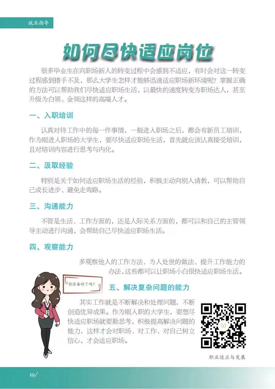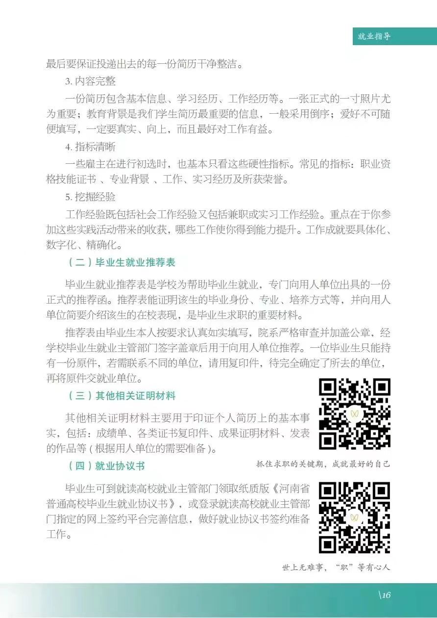为方便老员工深入了解国家和我省高校毕业生就业创业政策,充分做好就业准备,省教育厅联合有关部门及高校结合当代老员工特点,采用图文并茂、视频动画等方式,编撰了《河南省老员工就业创业服务指南》。《服务指南》采用线上线下相结合方式发布,线下纸质版发放至各高校,线上可在河南省毕业生就业信息网下载全文,还可扫描文内二维码观看河南省老员工就业e指导系列短视频和河南省“互联网+就业指导”公益直播课。
