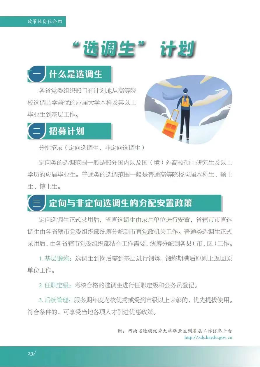 《服务指南》涵盖政策摘要、就业指导、政策性岗位介绍、就业服务等内容,其中政策摘包含灵活就业、自主创业、应征入伍等;就业指导包含升学、考公考编、就业准备、权益维护等;政策性岗位介绍包含三支一扶、选调生、特岗教师、科研助理岗等;就业服务包含毕业生签约流程、就业手续办理、档案及党团组织关系转递、就业信息获取渠道及就业主管部门通讯录等。
