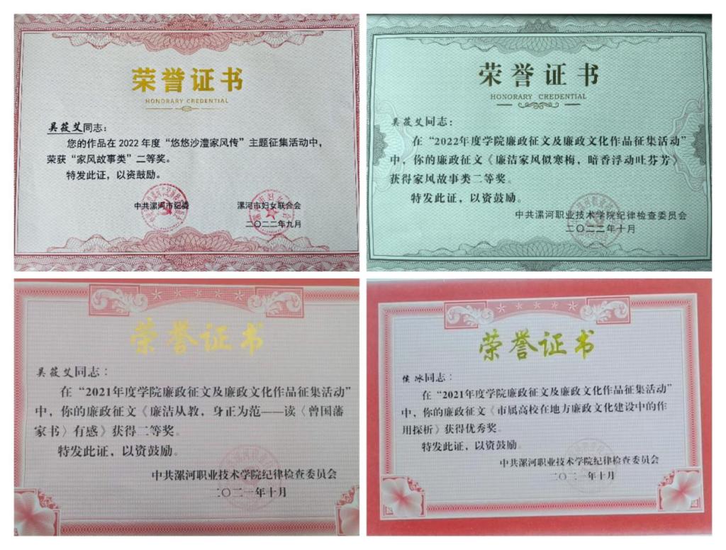 我系廉政征文证书