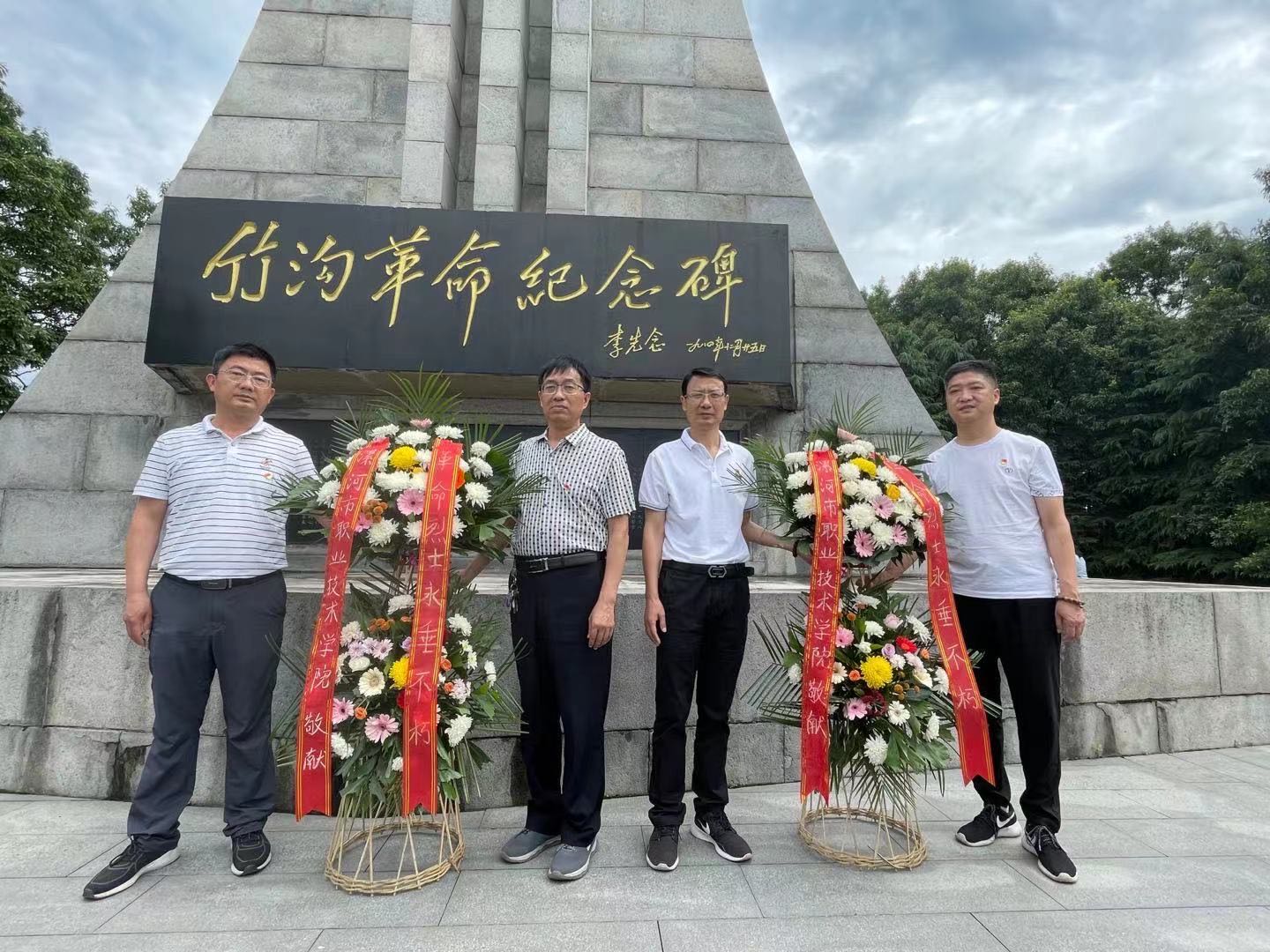 为竹沟革命纪念碑献花