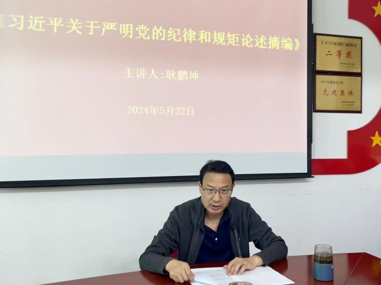 为进一步强化纪律意识,加强作风建设,5月22日下午,旅游与酒店管理党总支书记耿鹏坤同志为全体教师党员及员工发展对象讲授了一节别开生面的党纪教育专题党课。