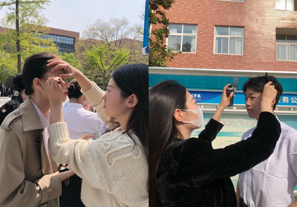招聘会现场人流如潮,约有近800名考生来参加此次招聘,除本校空乘专业员工,也有来自其他省份公司的员工及之前有过航司飞行经验的成熟乘务员。当天两位带队老师提前到达面试地点,对每位员工的妆容、衣着、发型进行检查与调整。之后员工每10人为一组进场进行个人整体形象与综合表现的面试考察,现场评委老师通过举牌投票决定考生通过与否,面试时长持续五个小时。
