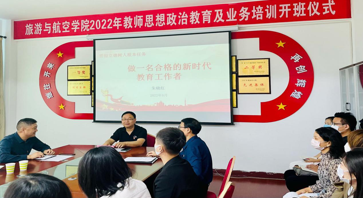 8月29日上午,公司党委委员、副董事长朱晓红和公司党委委员、组宣部长缪俊岭出席开班仪式。朱晓红从“能力作风建设年”的具体落实、争创标杆党支部、前期防疫工作的总结及下一阶段的部署、教师立德树人的重大责任和崇高使命几个方面作了培训动员讲话,而后又为旅航院全体教职工上了一堂题为《贯彻立德树人根本任务 做一名合格的新时代教育工作者》的党课。他首先分析了职业教育发展的形势及变化、公司面临的形势任务,就如何适应新形势,做一名合格的教育工作者提出了三点要求:一是思想上要与时俱进,二是行动上要积极进取,三是作风上要勇挑重担。最后寄语在场教师:要深入贯彻执行党的教育方针,求实创新促发展,努力成为一名合格的新时代教育工作者,为党培育高素质人才。缪俊岭宣读《yl7703永利2022年教师思想政治教育及业务培训工作方案》。