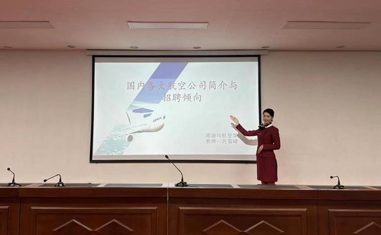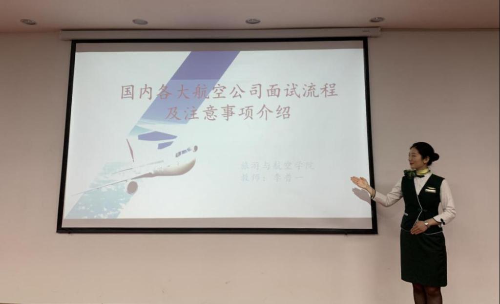 此次培训会由21级空乘班成功面试西部航空的李舒娟同学和进入海南航空复试的梁晓晴同学做员工代表发言,分享了她们面试的经验和感悟;由万雪晴老师和李普一老师分别向员工讲解了各大航空公司的简介、招聘倾向、面试流程和注意事项,并邀请了中国国际航空公司和春秋航空的在飞资深乘务长们给公司员工送上了面试技巧和指导;最后由公司党总支书记耿鹏坤老师对同学们的就业理念和职业规划进行了剖析并发表了讲话。