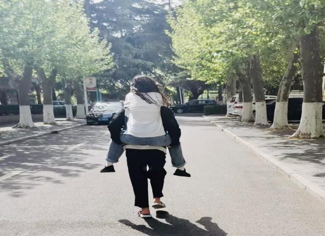 (热心学长将行动不便的学妹背至操场核酸检测点)