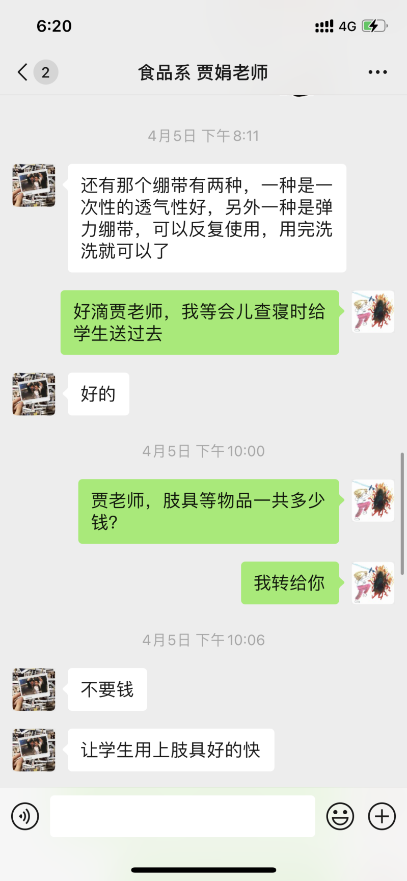 (校外志愿者食品公司贾娟老师看见求助信息后第一时间联系吴筱艾老师,将自己家里的弹力绷带和肢具送到公司)