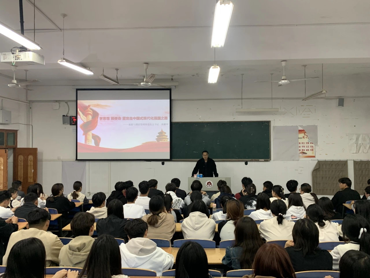 10月23日,旅游与酒店管理系党总支开展支部书记讲党课活动。党总支书记耿鹏坤、教工支部书记冯俊强、员工支部书记侯冰分别为2023级新生上了一堂生动的党课。