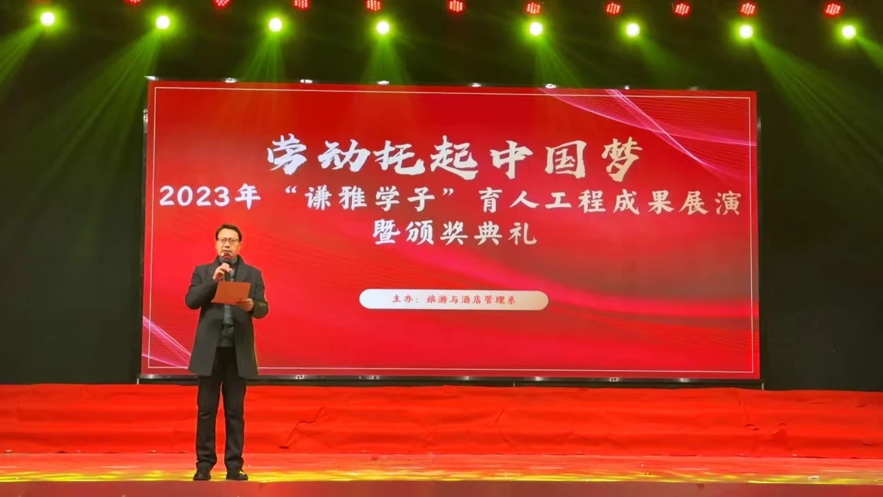 2023年,在公司党委的正确领导下,旅游与酒店管理系全体师生齐心聚力,落实全面从严治党要求,切实加强基层党建工作;以专业建设、课程改革为抓手,做好教学工作;以“谦雅学子”育人工程为载体,坚持三全育人,做好员工管理、人才招聘等工作。在党的建设、教学改革、技能竞赛、校企合作等方面都取得了可喜的成绩。12月26日下午,旅游与酒店管理系2023年“谦雅学子”育人成果展演暨颁奖典礼在大礼堂成功举办。漯河职业技术公司党委委员、副经理朱晓红、岳春洲,党委委员、工会主席李兆强出席。旅游与酒店管理系全体师生参加此次活动。