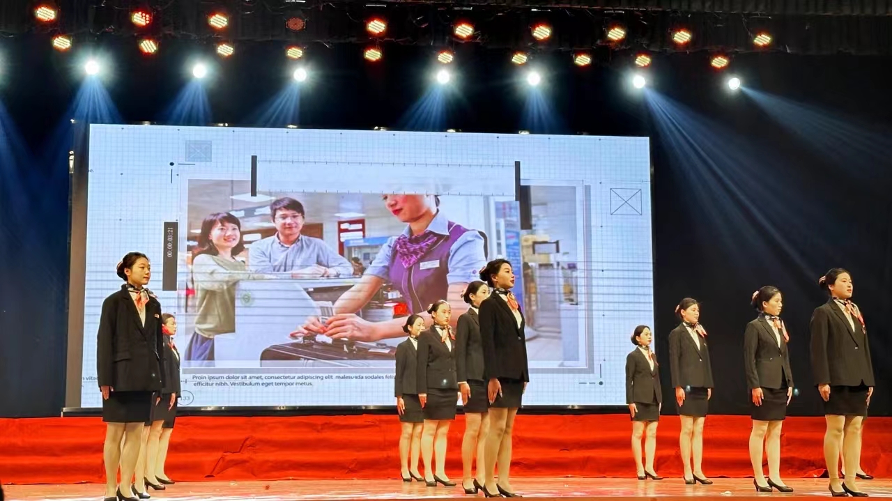 近年来,我系礼仪协会志愿者多次参加了我市重大活动服务接待工作,受到了各级领导的肯定,展示了公司员工的良好形象;2023年高铁民航空乘专业蓬勃发展,目前已经有2名同学分别入职东方航空和西部航空公司,有将近35名员工进入机场工作。