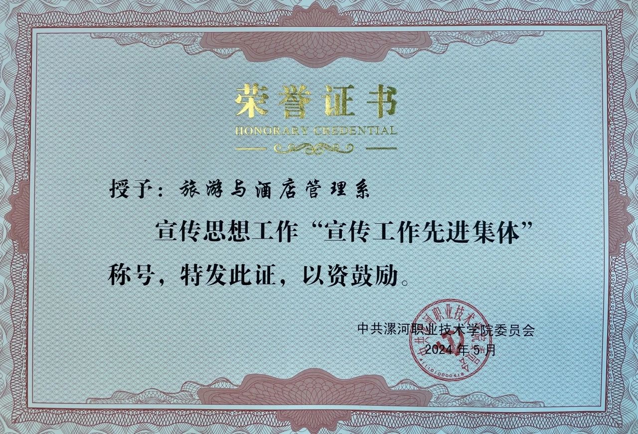近日,公司表彰了在宣传思想工作中表现突出的先进集体,激励广大师生积极参与到公司的新闻宣传工作中来。旅游与酒店管理系获评“宣传工作先进集体”称号。