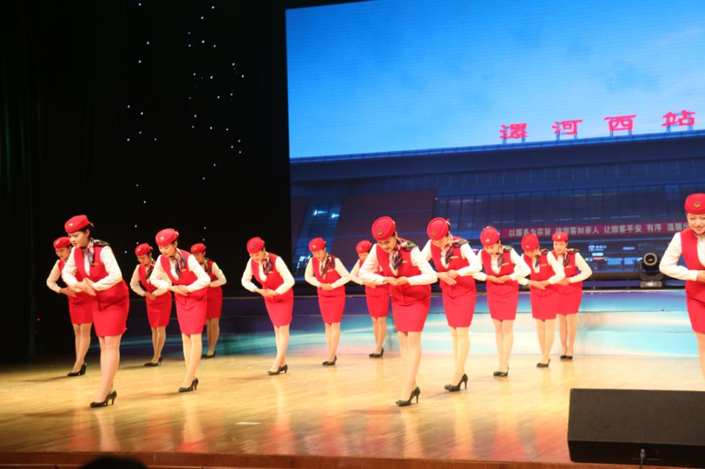 高铁专业员工在漯河市职教周进行高铁乘务礼仪展示