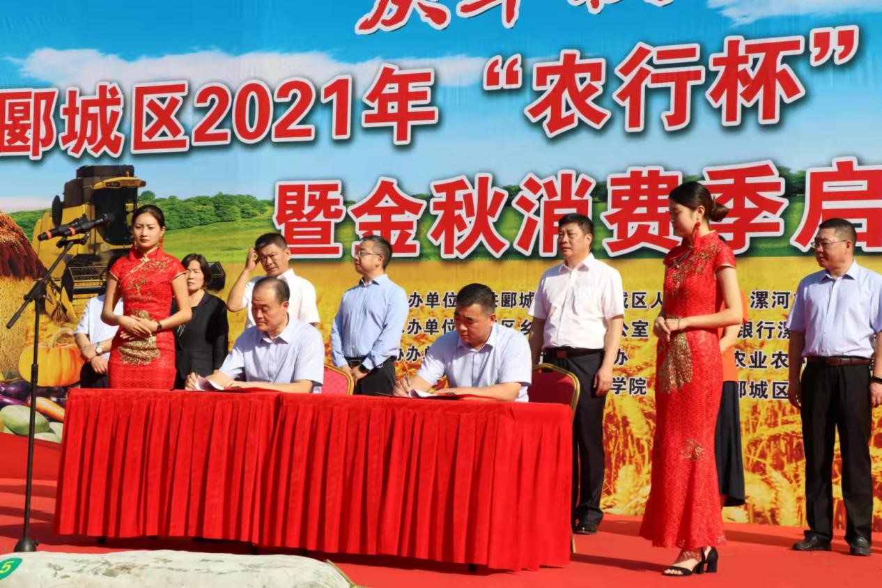 9月23日,郾城区第四届中国农民丰收节暨金秋消费季启动仪式在“国家森林乡村”冢马村的文化广场上举行。漯河市郾城区区委书记李新伟、市农业农村局局长罗静、漯河市职业技术公司党委副书记薛存心、市广播电视台台长魏丰强、农业银行漯河分行党委书记、行长韩俊岭、区领导朱俊峰、陈向凡、孟永生、闫慧英等出席了当天的启动仪式。会上,郾城区人民政府和yl7703永利签订了郾城区幸福乡村游一号线项目校地协议,倾力打造现代农业和幸福乡村游。