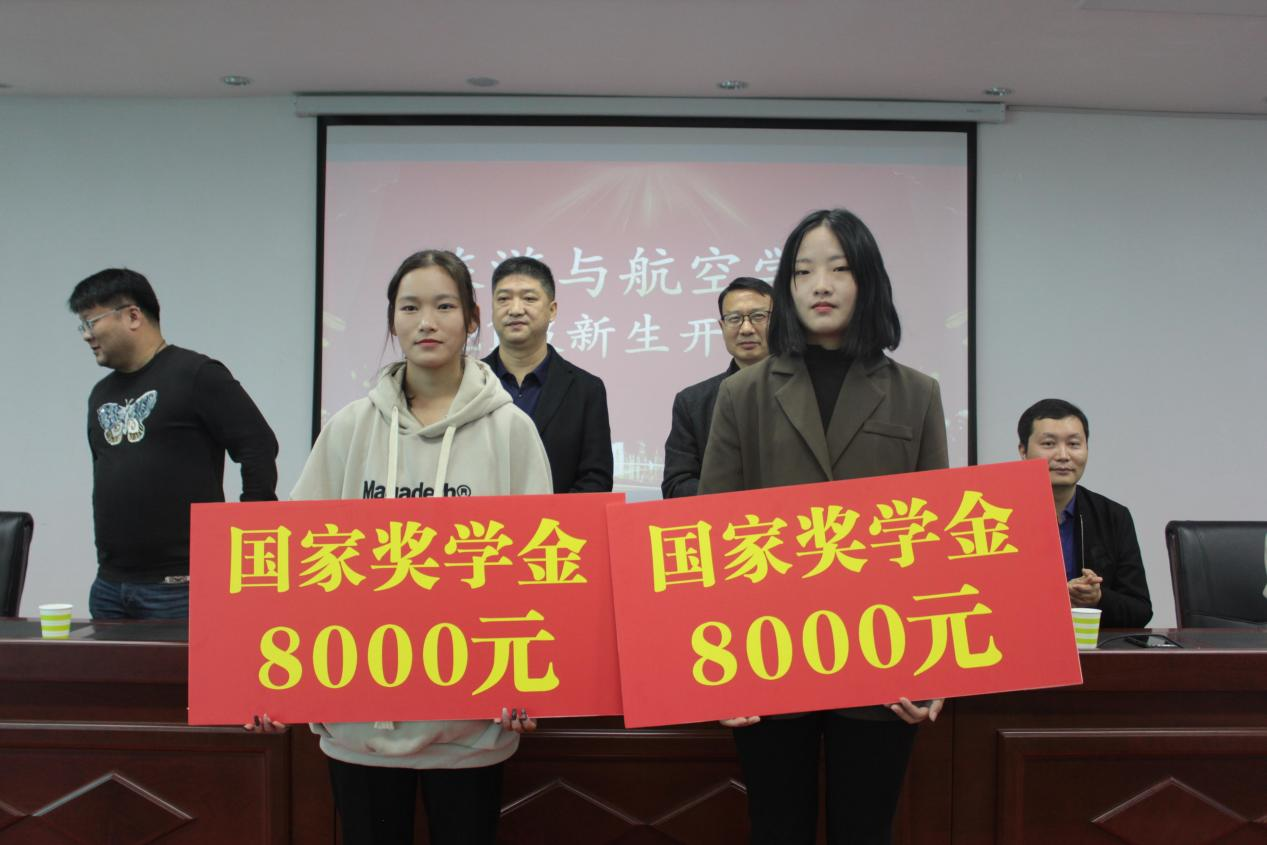 典礼上,公司党总支书记耿鹏坤、行政负责人冯俊强共同为获得国家奖学金的两位同学颁奖。一块小小的奖牌,承载着旅航院学子“自强不息、追求卓越”的精神,承载着旅航院学子的青春梦想。