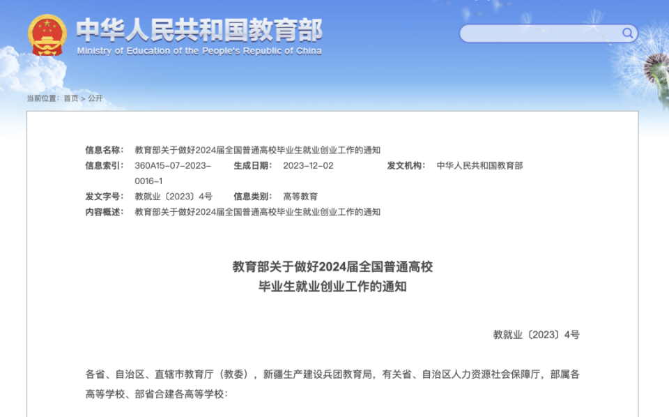 《关于做好2024届全国普通高校毕业生