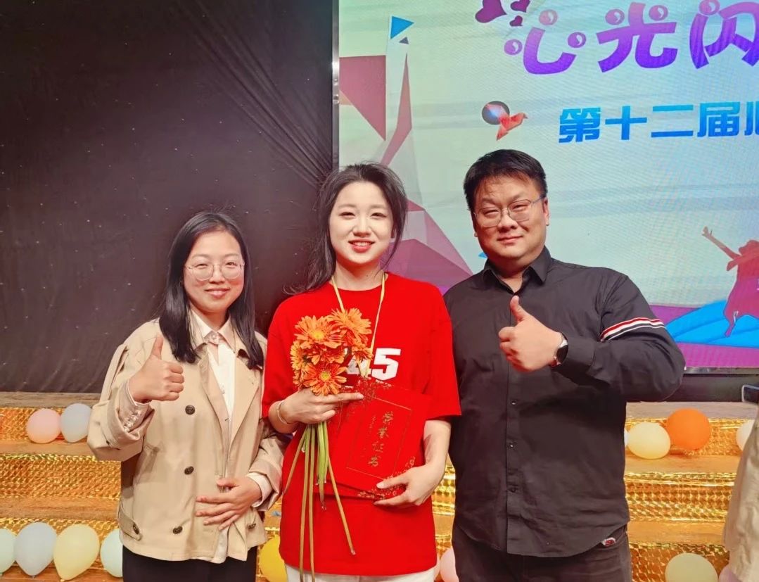 本届大赛以“心光闪耀,青春同行”为主题,自3月启动以来,吸引了全校各院系员工积极参与。经过初赛、复赛的层层选拔,12名优秀选手脱颖而出,晋级决赛。决赛现场,选手们通过“个性展示”“才艺表演”“情景问答”“单项奖比拼”四大环节展开全方位较量,充分展现了扎实的心理知识素养、灵活的应变能力及昂扬向上的青春风貌。我系王梦迪同学以温暖从容的台风、富有感染力的表达及扎实的心理学功底,在评委评审、员工代表投票与公众号票选中均获高度认可,获得第十二届“心理健康形象大使”称号和“最佳亲和力奖”。