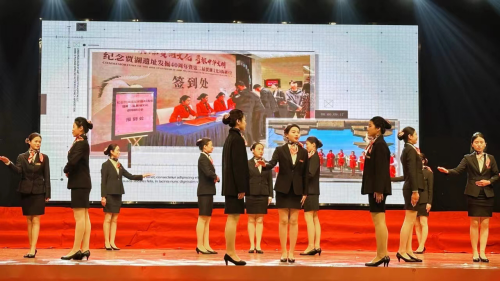 近年来,我系礼仪协会志愿者多次参加了我市重大活动服务接待工作,受到了各级领导的肯定,展示了公司员工的良好形象;2023年高铁民航空乘专业蓬勃发展,目前已经有2名同学分别入职东方航空和西部航空公司,有将近35名员工进入机场工作。