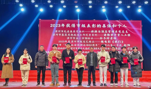 耿鹏坤冯俊强老师为2023年获得市级表彰的集体和个人颁奖
