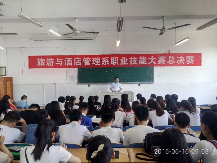 旅游与酒店管理系举行第三届职业技能大赛总决赛,公司副经理王变奇、教务处处长贾新政、督导室主任赵建功、教务处副处长王珍杰等领导出席开幕式并观看决赛。漯河迎宾馆及黄河假日酒店客房部经理、餐饮部经理受邀参与评委工作。旅游与酒店管理系主任王世锋在开幕式上致词。