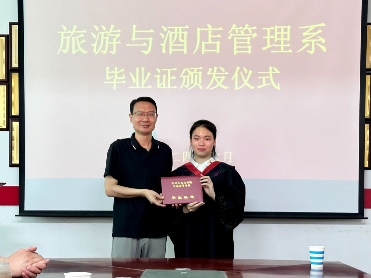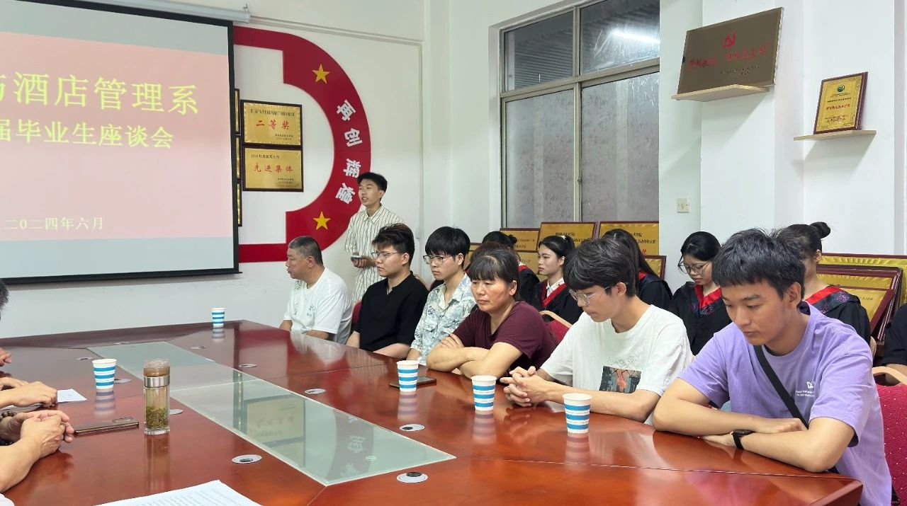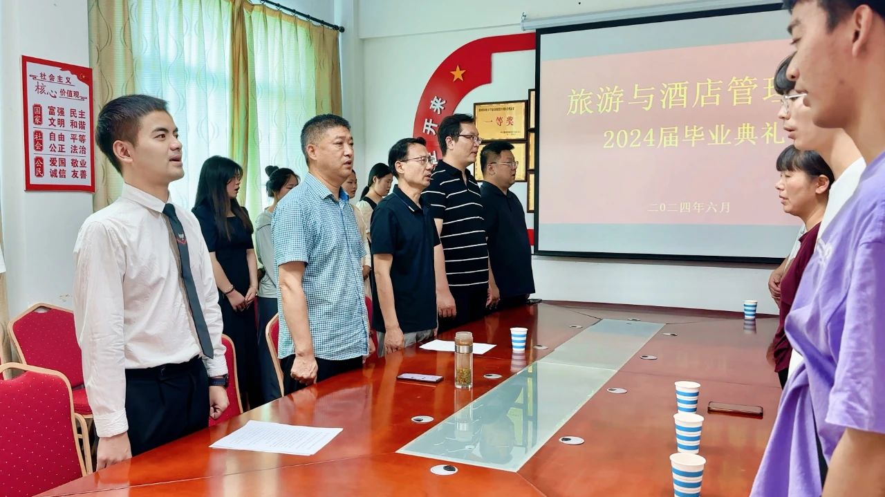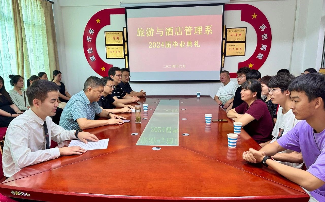 6月28日上午9时,yl7703永利旅游与酒店管理系2024届毕业典礼在系会议室举行。系领导耿鹏坤、冯俊强、侯冰、潘智睿等老师出席典礼。赵阳主持典礼。