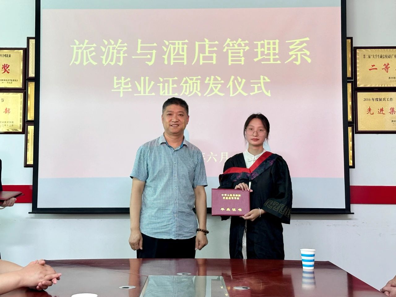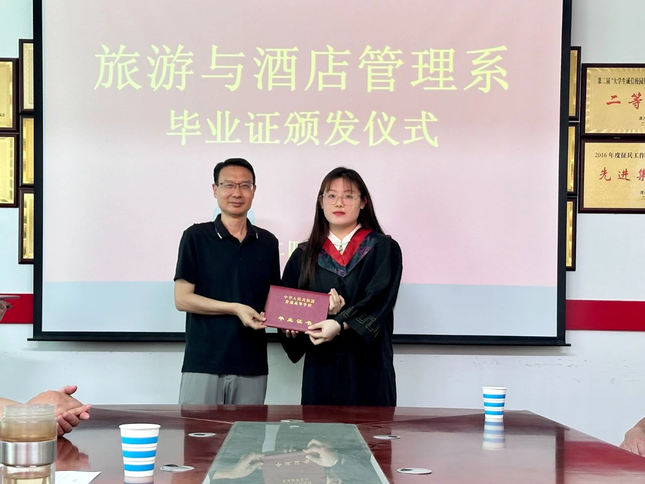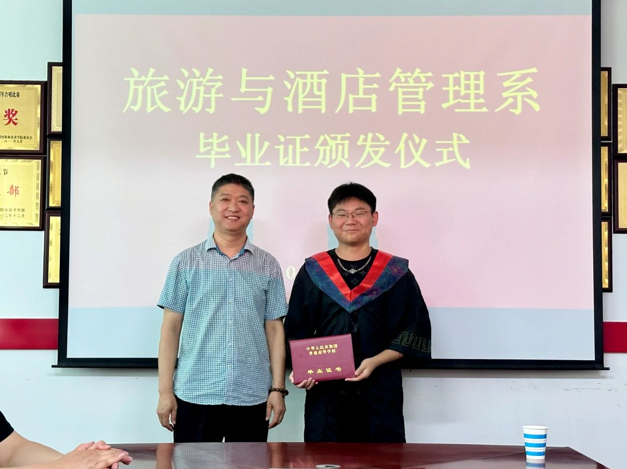 6月28日上午9时,yl7703永利旅游与酒店管理系2024届毕业典礼在系会议室举行。系领导耿鹏坤、冯俊强、侯冰、潘智睿等老师出席典礼。赵阳主持典礼。