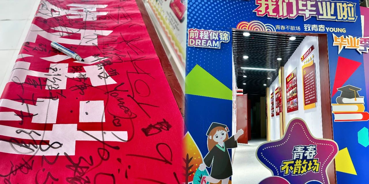 毕业典礼结束后,毕业生拍照签名,合影留念。