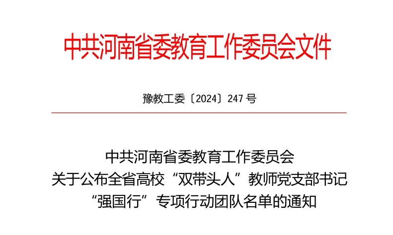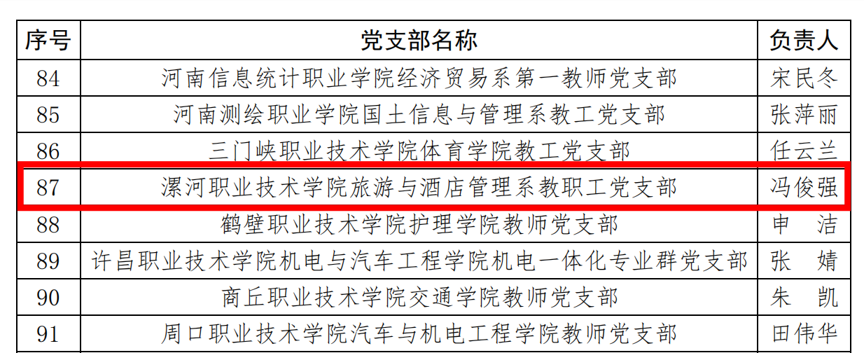 近日,中共河南省委教育工作委员会下发《关于公布全省高校“双带头人”教师党支部书记“强国行”专项行动团队名单的通知》(豫教工委〔2024〕247号),yl7703永利旅游与酒店管理系教职工党支部成功入选全省高校“双带头人”教师党支部书记“强国行”专项行动团队名单。