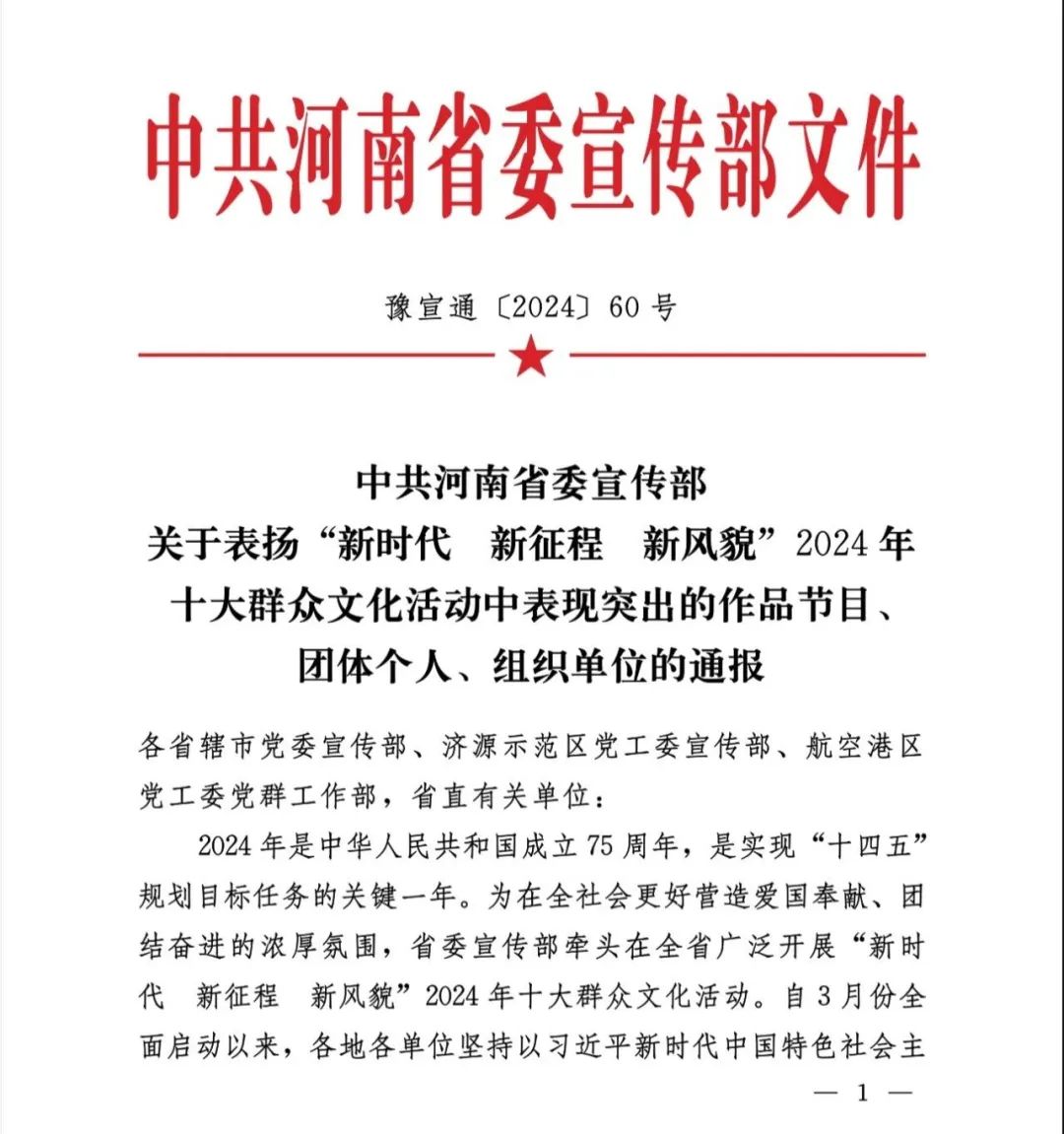 “新时代 新征程 新风貌”河南省十大群众文化活动由省委宣传部牵头在全省广泛开展。该活动以习近平新时代中国特色社会主义思想为指导,聚焦深入学习贯彻党的二十大精神和深化习近平文化思想的河南实践这条主线,牢牢把握新时代新的文化使命,进一步唱响自信自强、因结奋斗的时代主旋律。