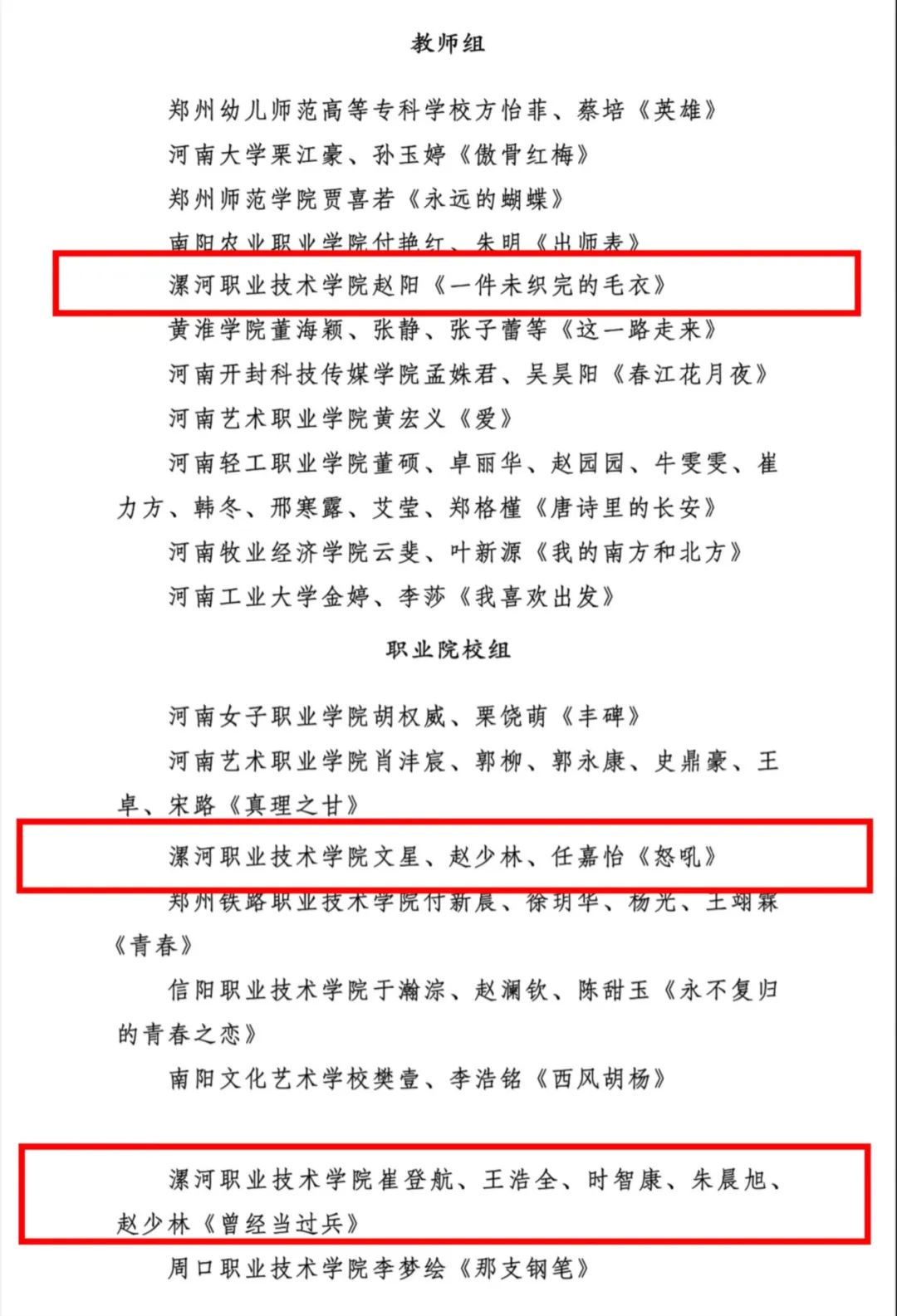近日,河南省“新时代 新征程 新风貌”2024年十大群众文化活动工作总结会议在郑州举行,中共河南省委宣传部对表现突出的作品和组织单位予以通报表扬。由旅游与酒店管理系创作的作品《一件未织完的毛衣》《怒吼》《曾经当过兵》被评为表现突出的作品节目,并获得第六届中华经典诵写讲大赛暨“诵读中国”经典诵读大赛(河南赛区)教师组和职业院校员工组一等奖。