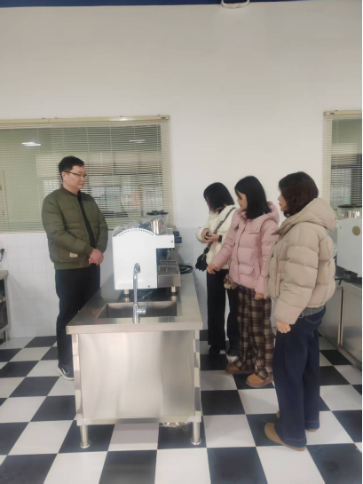 公司酒店管理专业教师团队重点参观了该校独具特色的“咖啡酒水生产实训中心”。该实训室突破传统“模拟服务场景”模式,创新采用“生产车间+电商运营”一体化设计:前端生产区配备全自动咖啡生产线、精酿啤酒设备及品控实验室,员工可完成从原料处理、饮品制作到包装设计的全链条实操;后端运营区设有电商直播间和网络订单处理中心,员工团队通过抖音、微信小程序等平台开展真实产品售卖,实现“实训即实战”的沉浸式教学模式。公司酒店管理专业教师对这种实践教学模式称赞不已。