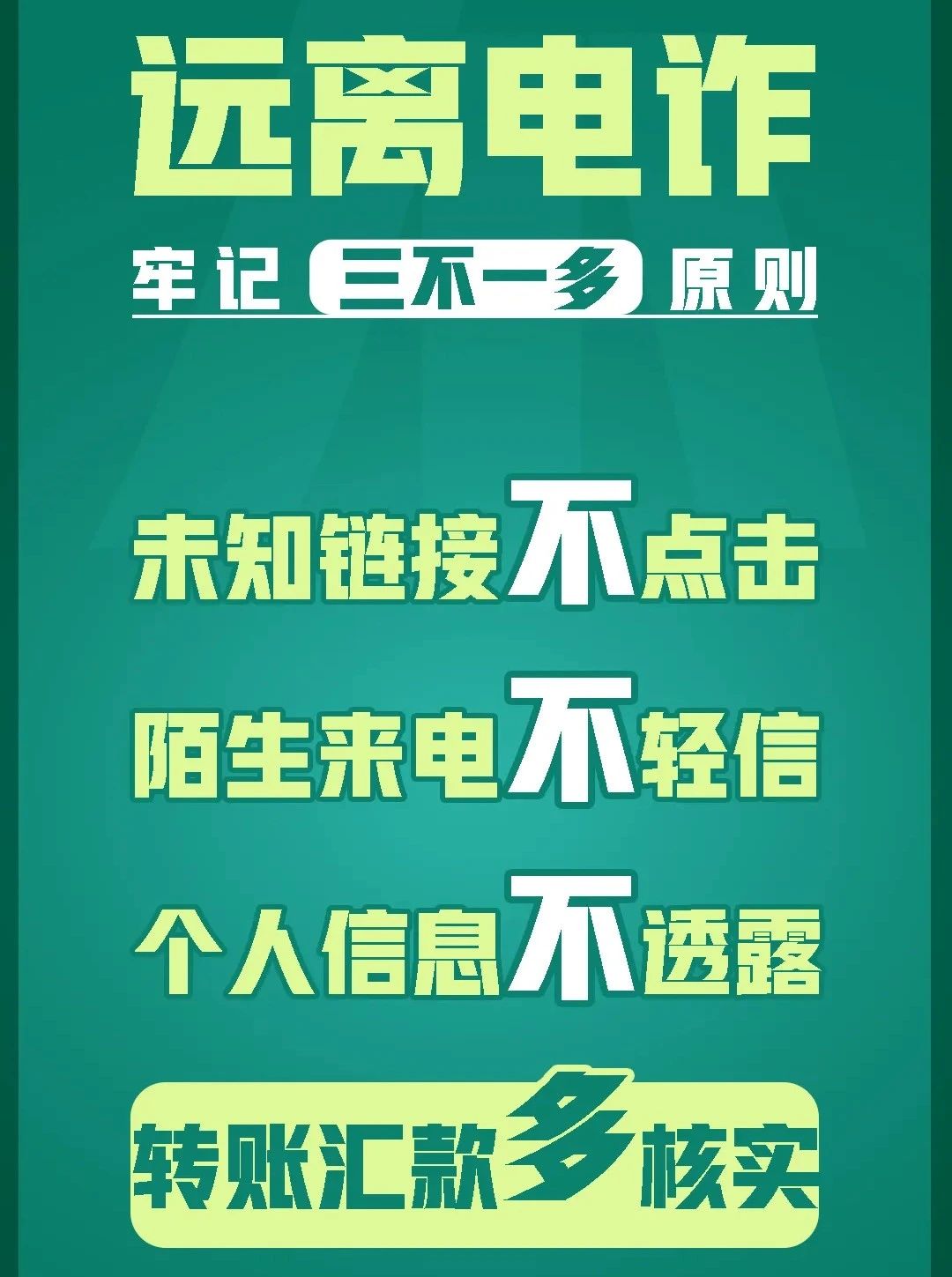 3.当前网络诈骗频发,同学们要学习必要的网络安全知识,牢记“三不一多”,即:未知链接不点击,陌生来电不轻信,个人信息不透露,转账汇款多核实。