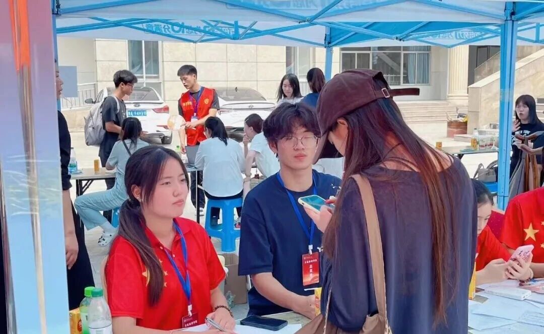 校园到处是志愿者们忙碌的身影