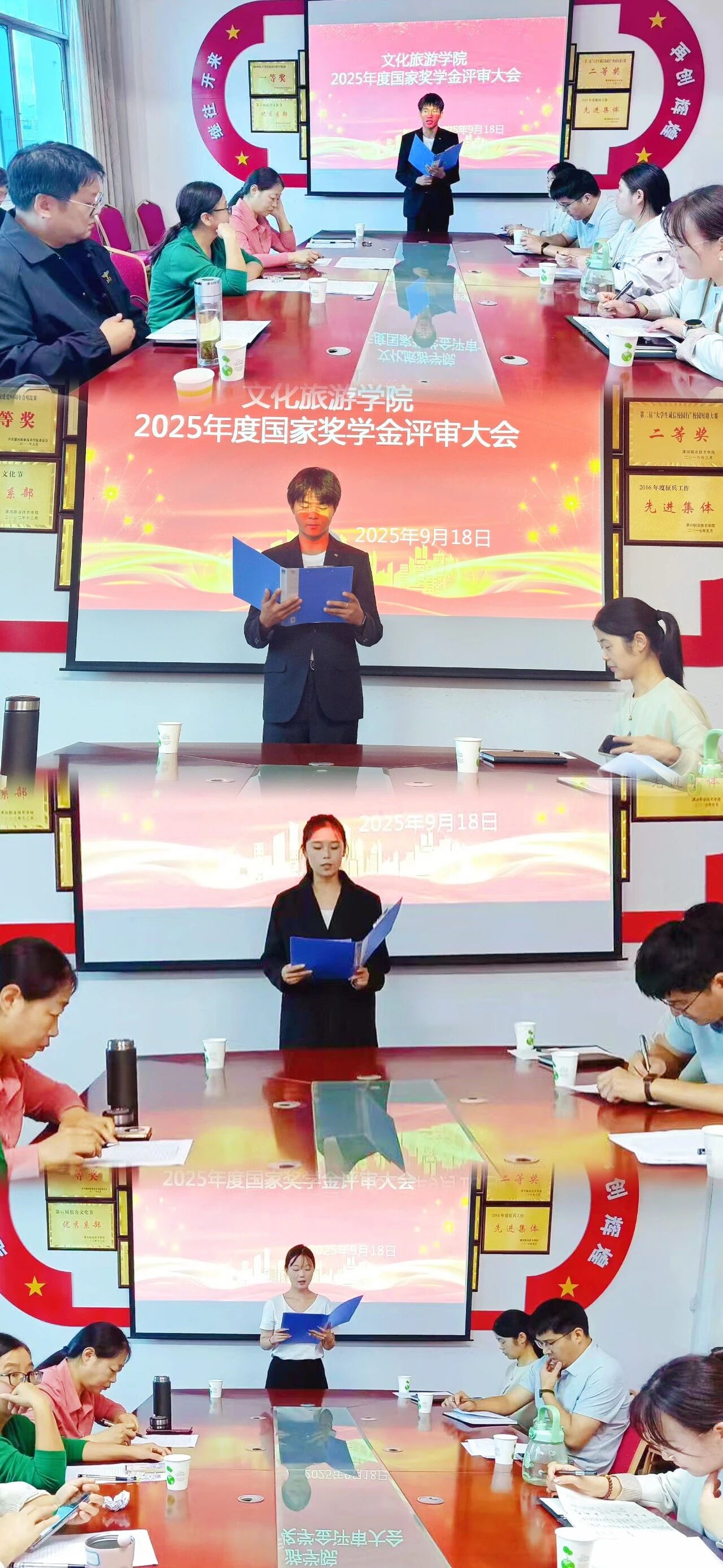 评审会上,候选人依次上台,通过富有感染力的演讲,全面呈现了各自在校期间优异的学习成绩、丰富的员工工作经历、突出的荣誉奖项、扎实的社会实践成果以及良好的人际交往能力。他们自信从容、风采卓然,展现出文旅学子追求卓越、全面发展的精神风貌。