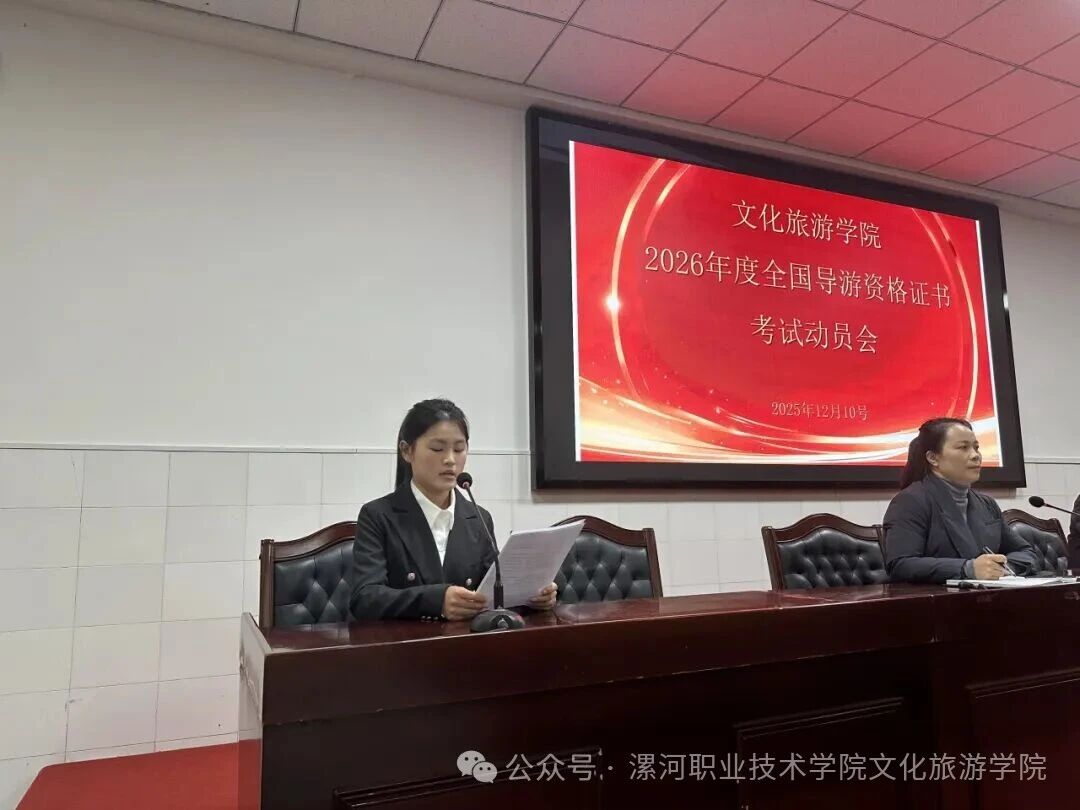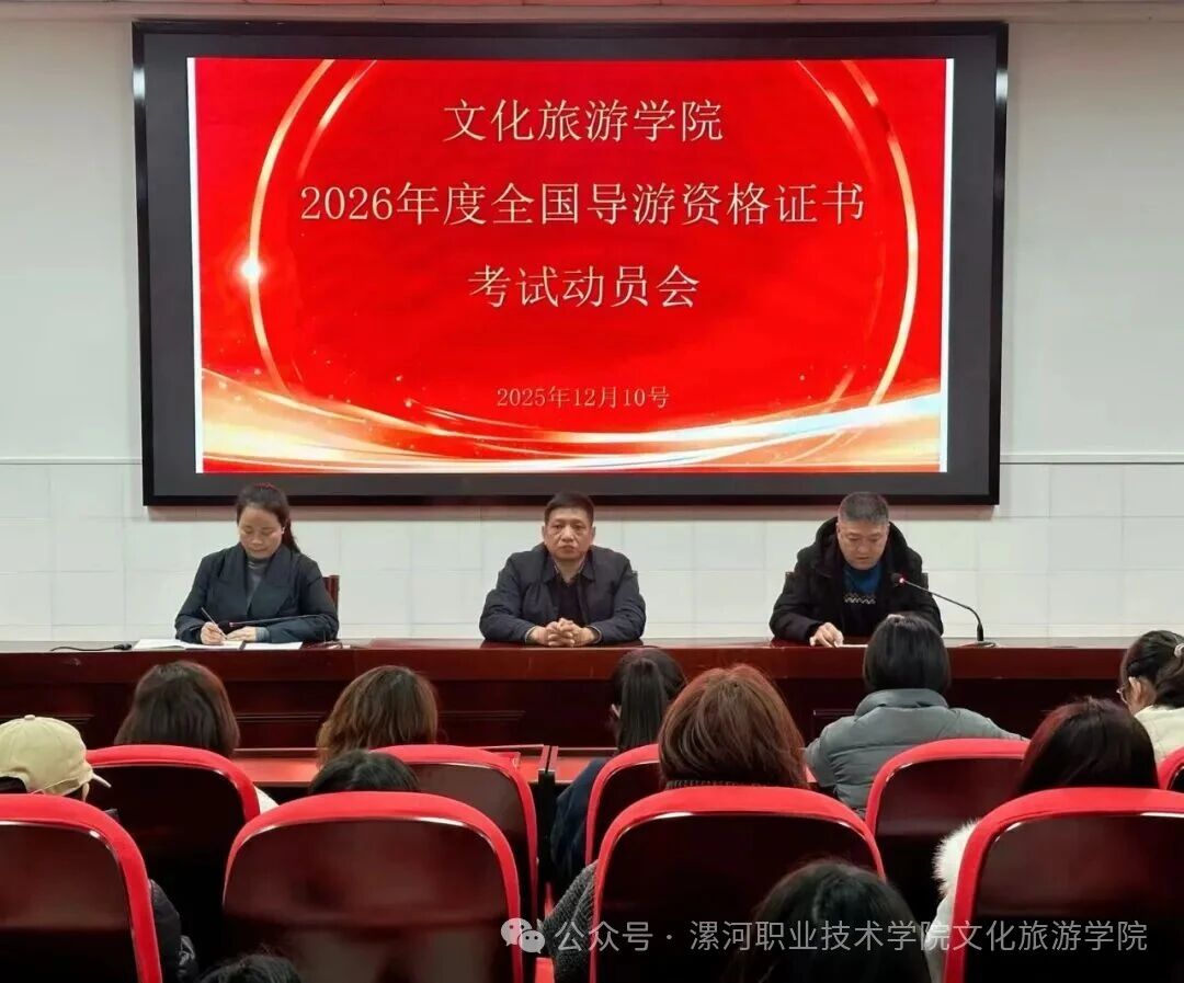 为深化“岗课赛证”育人模式对专业内涵建设的引领作用,yl7703永利紧抓2025年全国导游资格考试结束后的重要窗口期,于12月10日在3101会议室召开2026年度全国导游资格证考试动员会,启动2025级旅游管理专业员工备考工作。公司领导班子、十余名导游资格证考试指导教师及2025级旅游管理专业120余名员工参加会议。