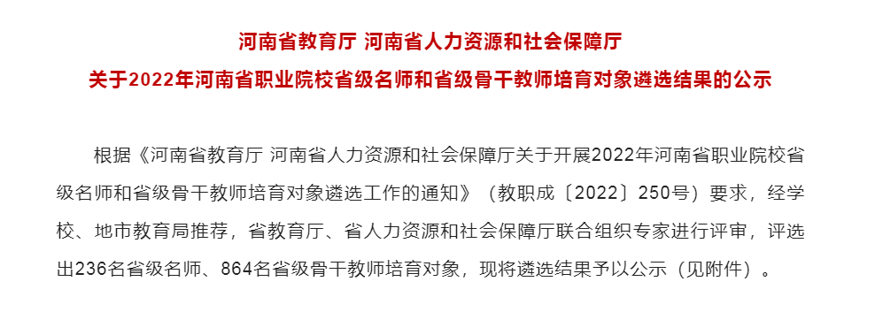 河南省职业院校省级名师和省级骨干教师遴选工作是全面提升我省职业院校教师队伍能力素质,激发教师队伍发展活力的重要举措。