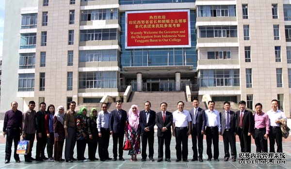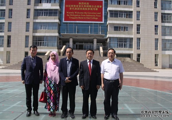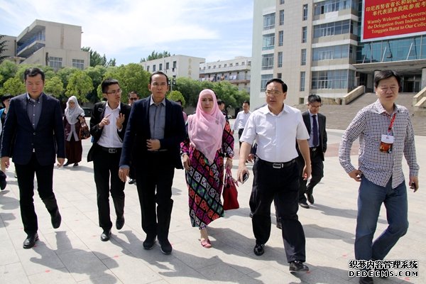 印尼西努省省长穆罕默德.宰努尔.马吉(左三)一行在顾文明经理(右二)陪同下参观校园