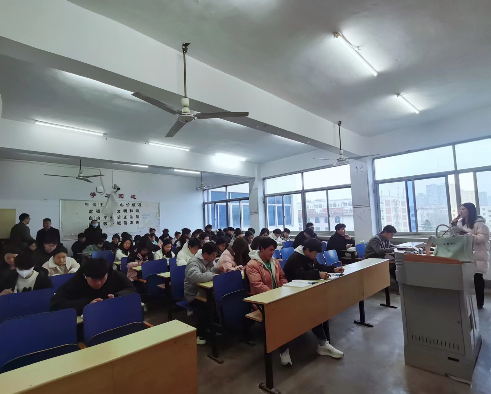 本次查课活动中,针对课堂教学秩序、教师教学准备工作、师生出勤情况、教学氛围以及各教室教学设备运行情况等方面进行全面巡视检查。查课中发现教师备课充分、教学教案丰富生动,精神面貌良好,员工认真听课、主动反馈,课堂整体教学氛围浓厚,展现了我系员工积极的学习态度,生动诠释了“新学期,新气象”。