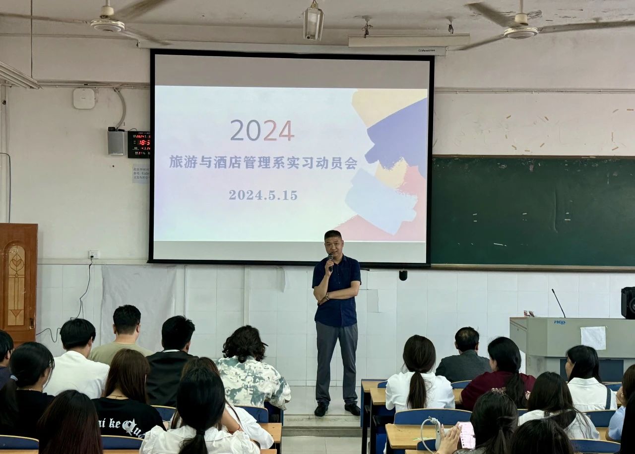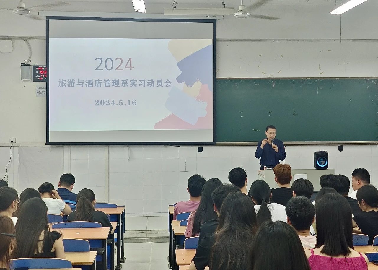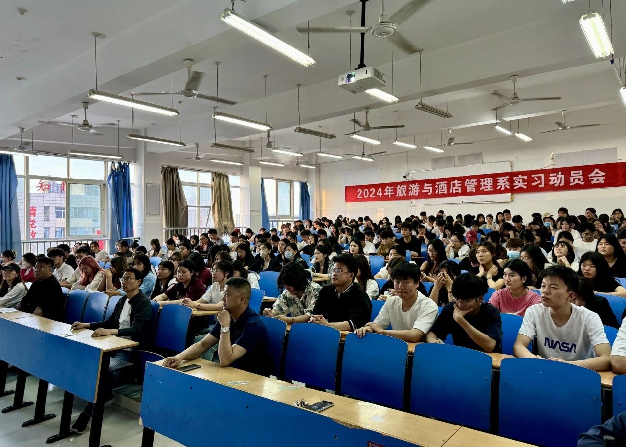 为进一步做好2022级员工毕业实习工作,帮助员工了解实习政策和就业形势,充分调动员工的就业积极性,5月16、17日晚,旅游与酒店管理系分专业举行了2024年实习动员会。系班子成员及全体辅导员出席会议,2022级全体员工参加会议。