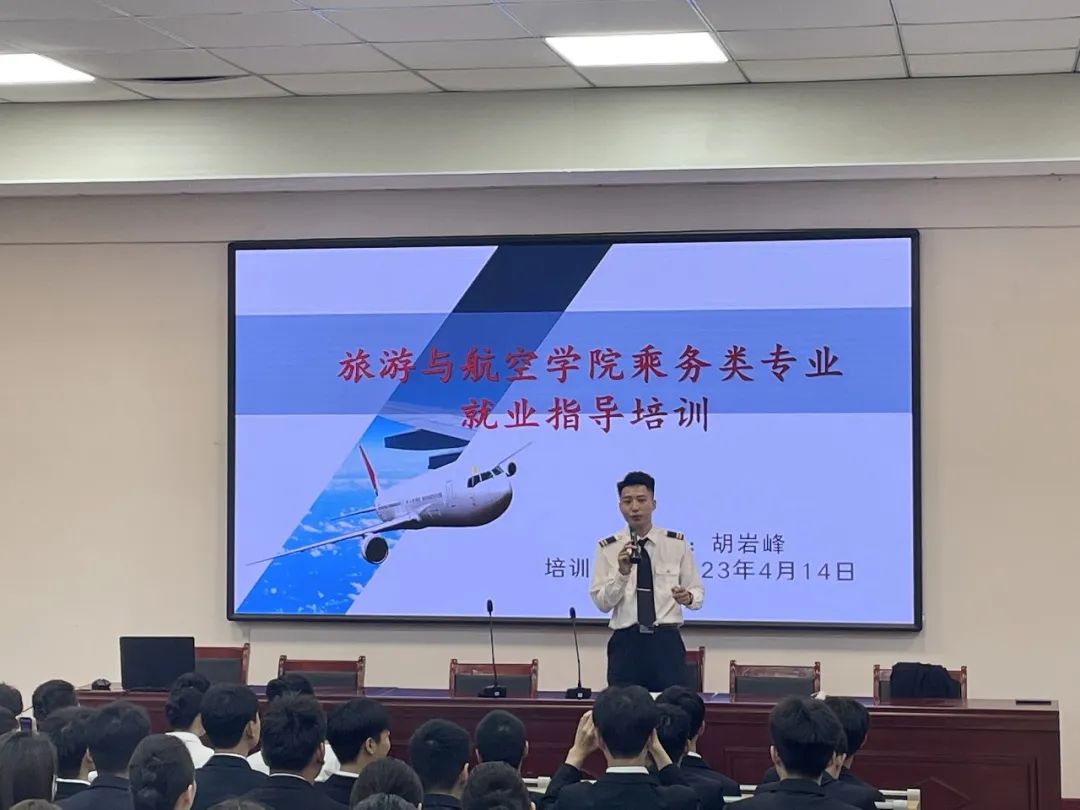 4月14日,公司高铁空乘教研室特邀春秋航空公司前资深乘务长胡岩峰老师为2021级空中乘务、民航运输服务、高速铁路客运服务专业同学进行面试培训与就业指导。
